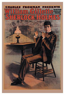 Gillette began an apprenticeship as an actor at a young age, coming in contact with Mark Twain. Twain became his mentor. he was not immediately successful; it wasn't until he was 28 that a job with the Frohman brothers allowed him to incororpate skills as a playwright, actor, and director (at low pay). But his first production carrying all three roles was enough of a success that he co-authroed another with the famous novelist Frances Hodgson Burnett, author of The Secret Garden, The Little Princess, and Little Lord Fauntleroy, some of which titles ought to be familiar.